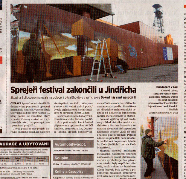 V rámci festivalu jsme vytvořili malbu na oplocení dolu Jindřich v Ostravě. Téma malby se bylo volné ztvárnění nedávné historie města Ostravy. Vsadili jsme na jeho průmyslově-architektonickou tvář, která svým tématem skvěle zapadá do obsahové mozaiky festivalu.